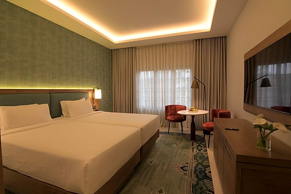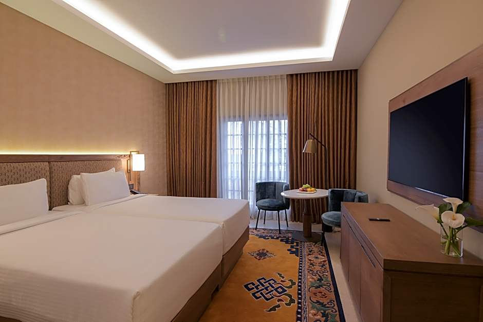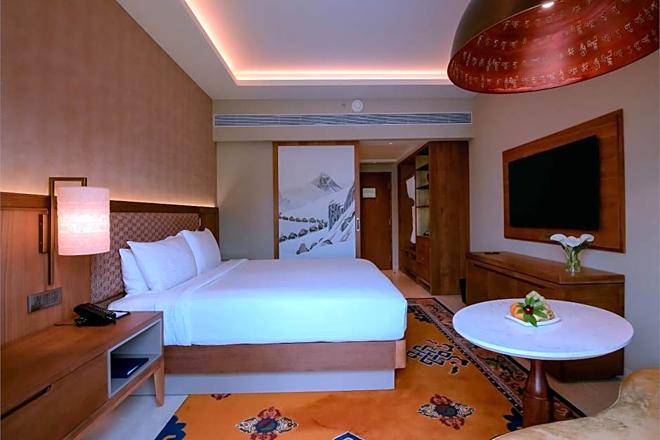 Stepping into the Heritage Deluxe Room is like walking into a living piece of history, a graceful tribute to the architectural soul of the Kathmandu Valley. The walls, adorned with traditional red brickwork and detailed wooden carvings, echo the timeless charm of Nepal’s ancient palaces and courtyards. Each element has been crafted to reflect the cultural brilliance of a bygone era, reimagined for modern comfort. The room is a beautifully curated space where every detail tells a story. From locally inspired paintings to ornamental panas (traditional oil lamps) and fine woodwork, the atmosphere is one of quiet elegance and cultural depth. Gentle lighting casts a warm glow across the room, creating a peaceful retreat that soothes both body and mind. As daylight streams through large windows, you're treated to calming views of the hotel’s serene gardens, plants, and peaceful walkways offering a breath of fresh air and a moment of stillness. Whether you're sipping tea by the window, journaling at the desk, or simply lying back and soaking in the ambiance, the Heritage Deluxe Room invites you to slow down and reconnect. This room is an intimate encounter with Nepal’s rich heritage, brought to life with warmth, comfort, and authenticity.